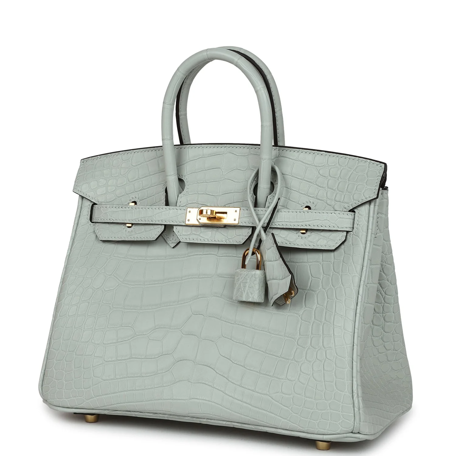 Hermès Birkin 25 Gris Neve Matte Alligator Gold Hardware