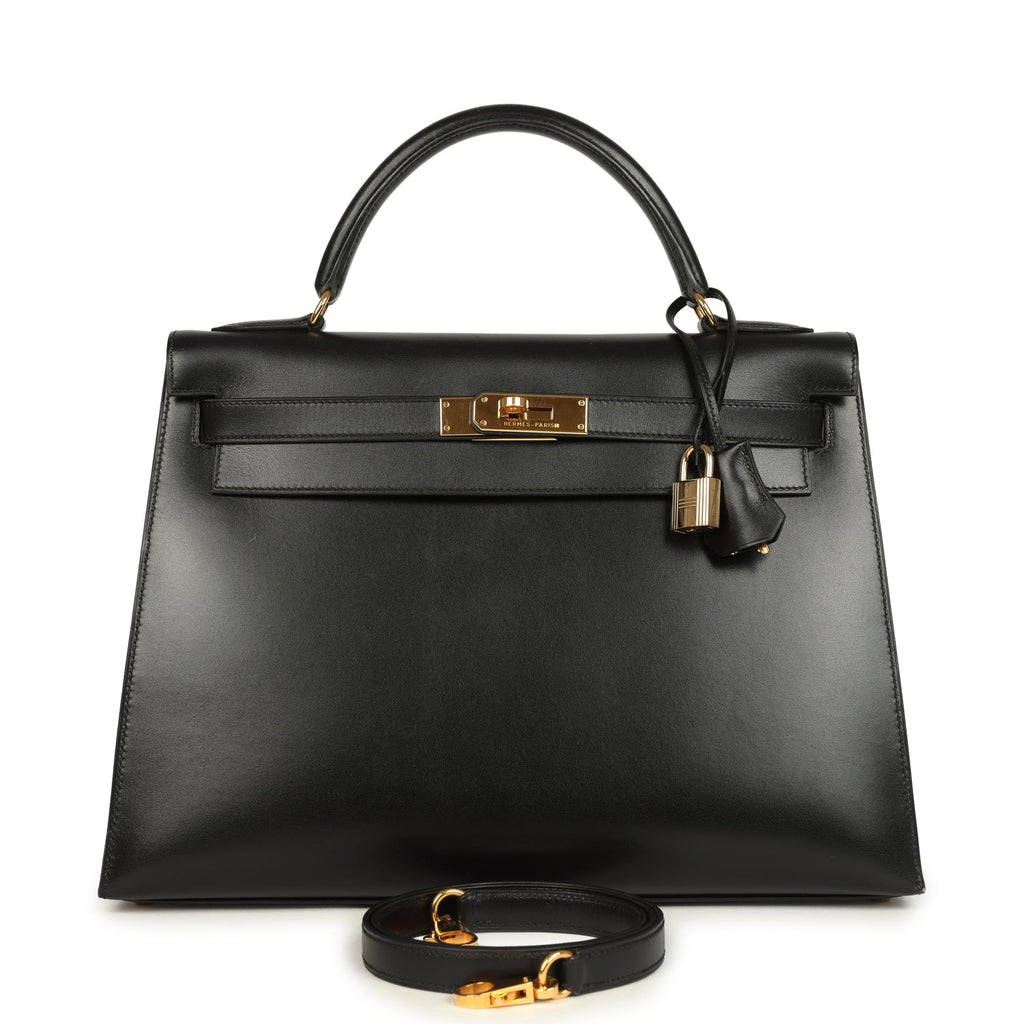 Vintage Hermes Kelly Sellier 35 Black Box Gold Hardware