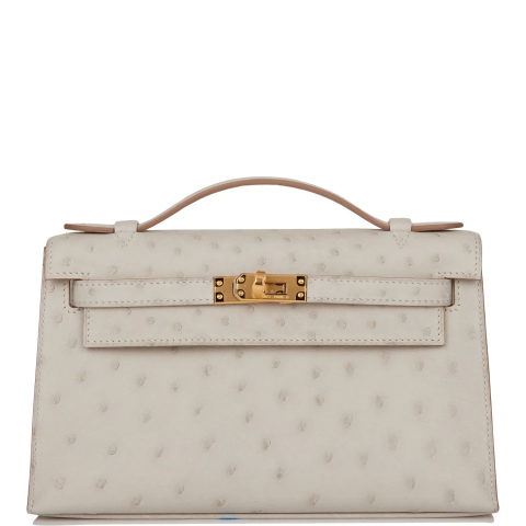 Hermès Kelly Pochette Gris Perle Ostrich Gold Hardware