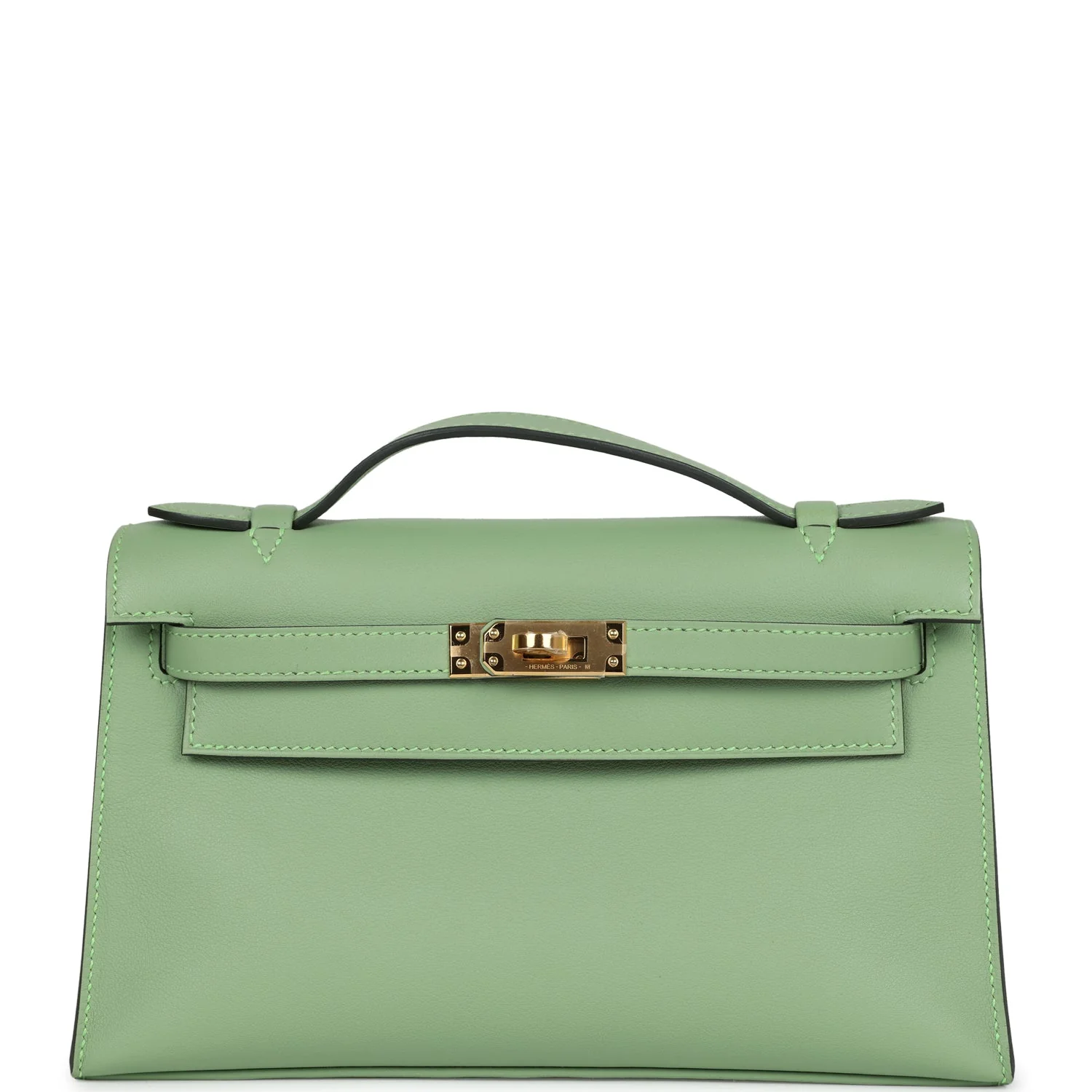 Hermès Kelly Pochette Vert Criquet Swift Gold Hardware