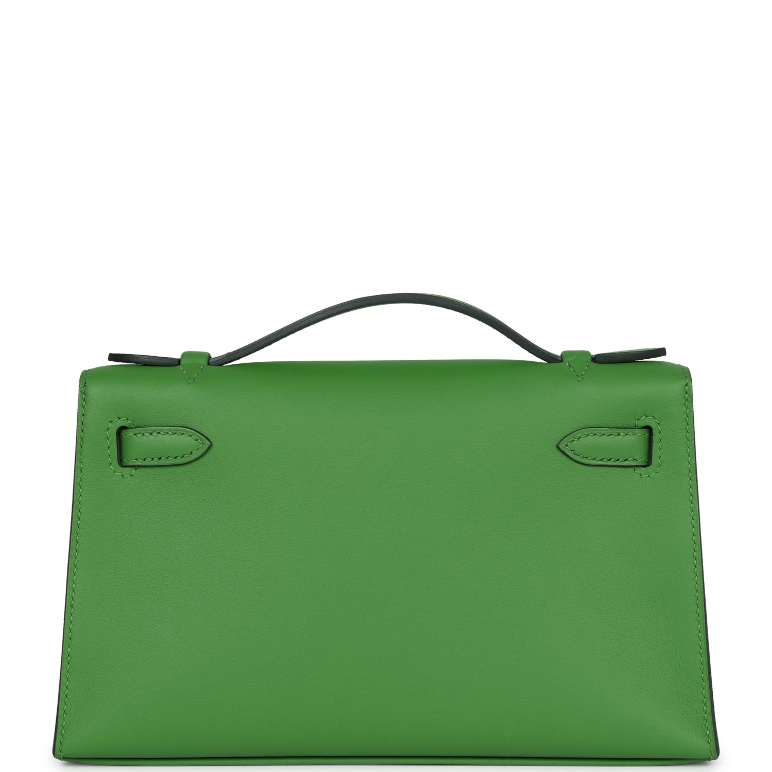Hermès Kelly Pochette Vert Yucca Swift Gold Hardware