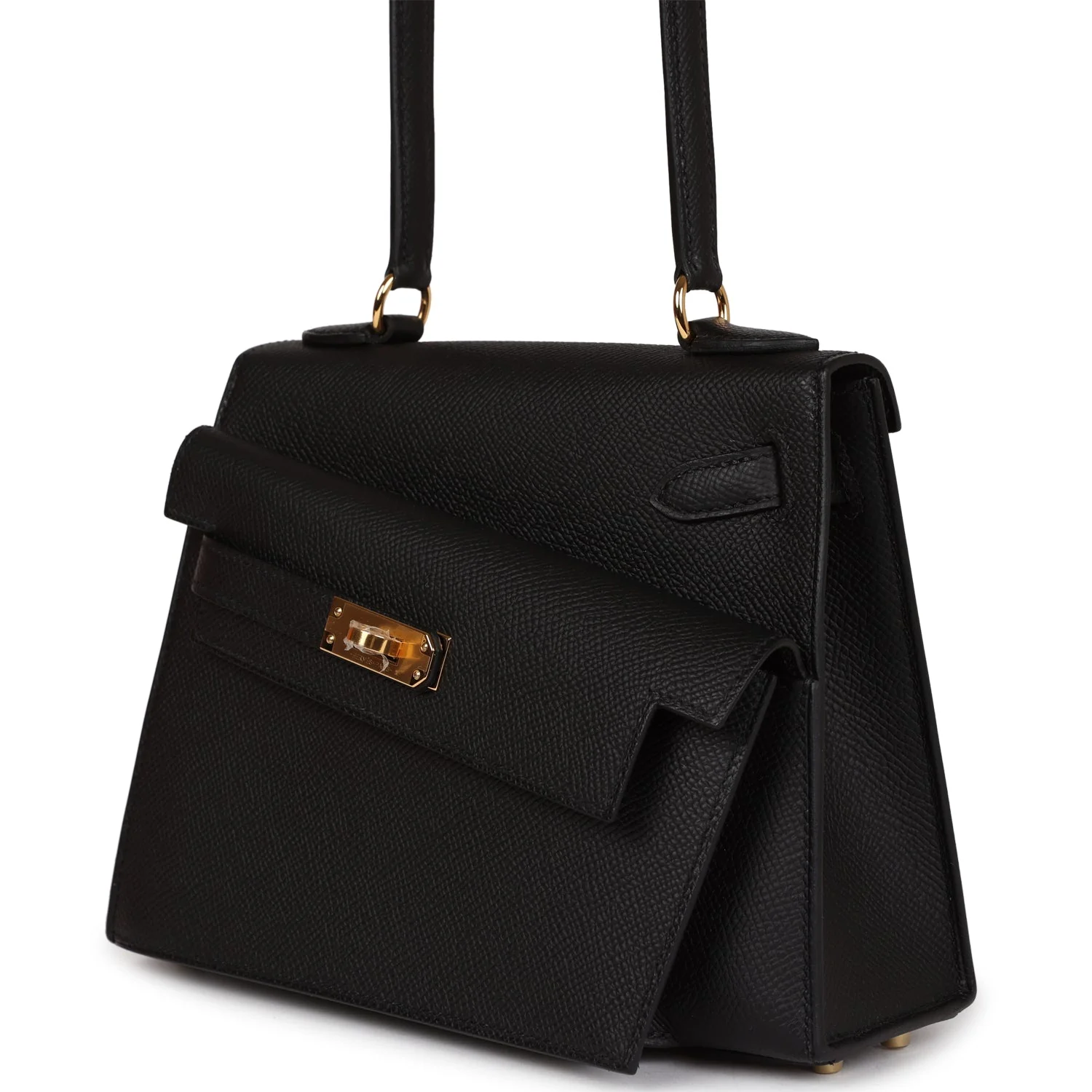 Hermès Kelly Sellier en Desordre 20 Black Epsom Gold Hardware