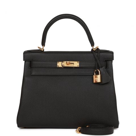 Hermes Kelly Retourne 28 Black Togo Gold Hardware