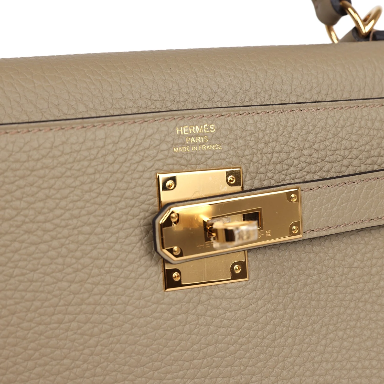 Hermès Kelly Retourne 28 Beige Marfa Clemence Gold Hardware