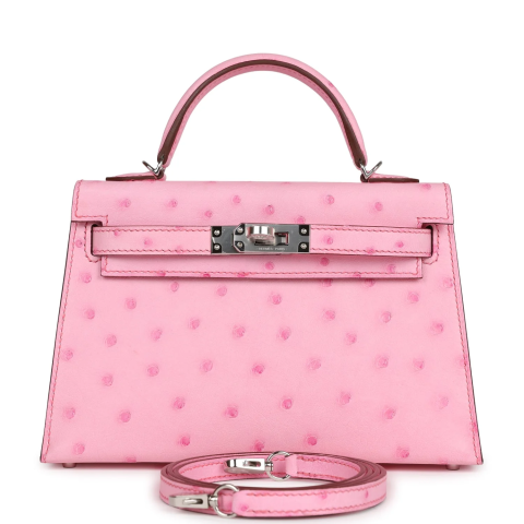 Hermès Kelly Sellier 20 Bubblegum Ostrich Palladium Hardware